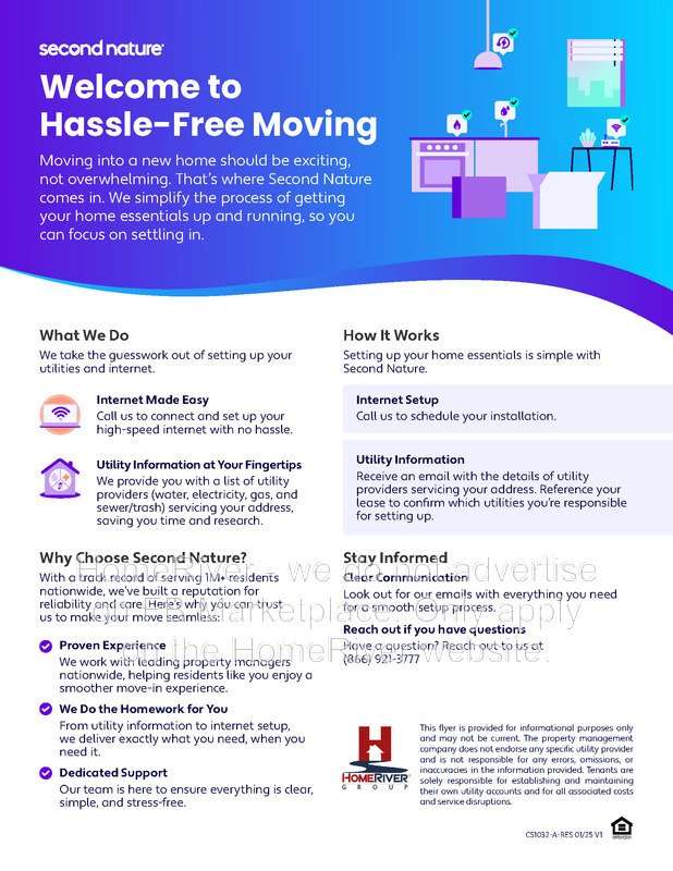 *The estimated total monthly leasing price does not include utilities or optional/conditional fees, such as: pet, utility service, and security deposit waiver fees. Our Resident Benefits Package includes required Renters Insurance, Utility Service Set-Up, Identity Theft Protection, Resident Rewards, HVAC air filter delivery (where applicable), and Credit Building, all at the additional monthly cost shown above. To learn more about additional leasing fees and requirements, please contact HomeRiver Group at 833-774-6323.